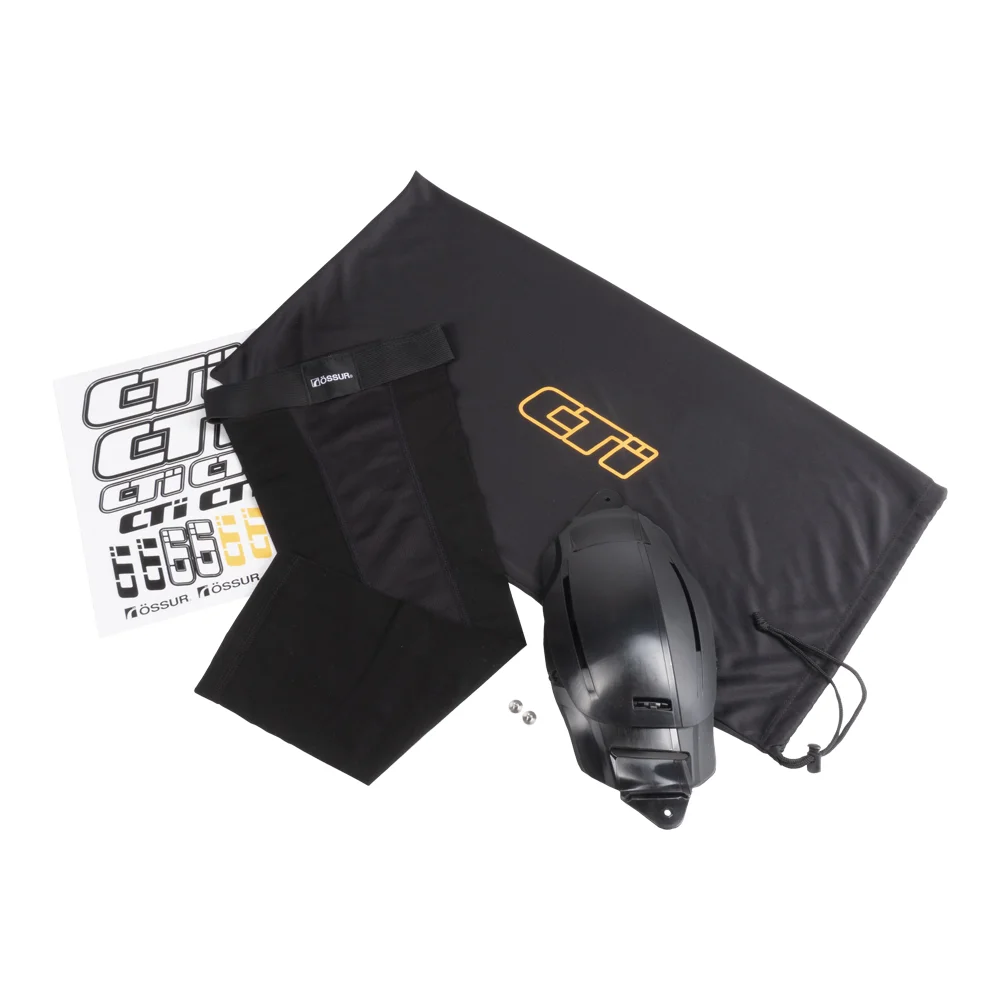 Il kit comprende un pararotula, una calza, una sacca e un set di adesivi CTi